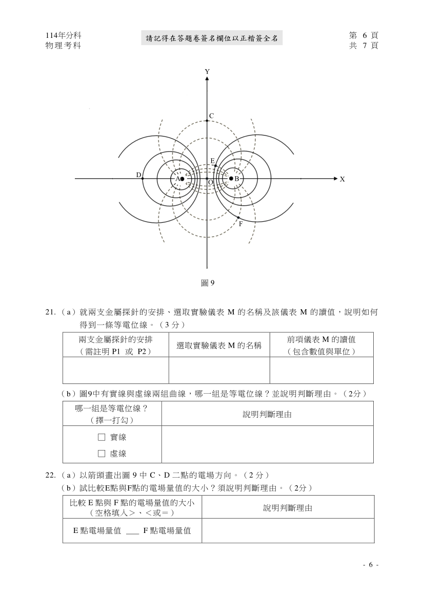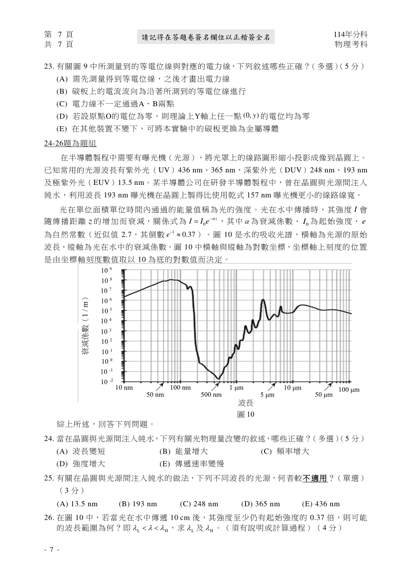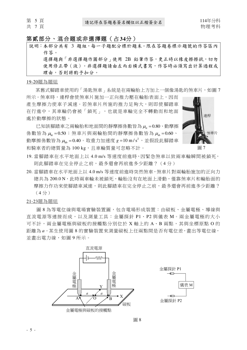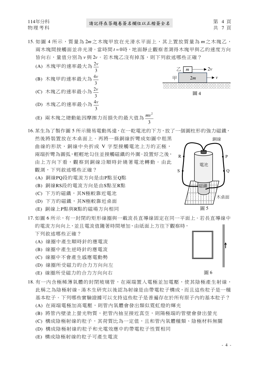 114分科測驗物理科完整試題及解答