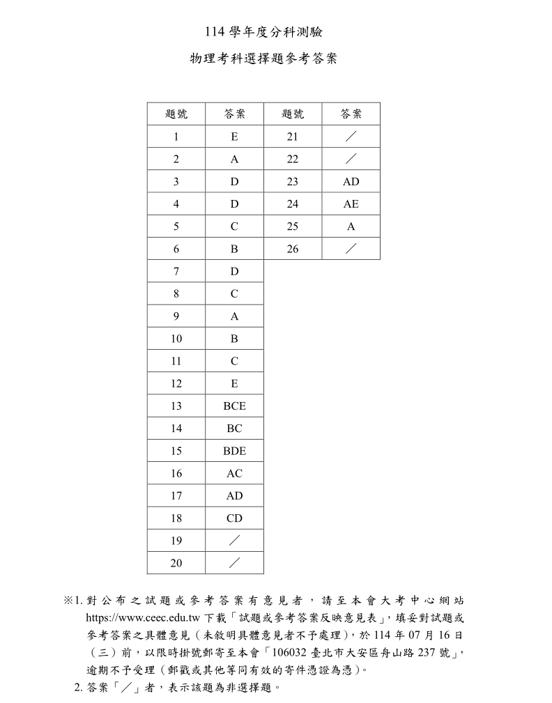 114學年度大學分科測驗於7/11~7/12舉行,於考完公布試題及解答。 <114分科測驗各科試題及解答>