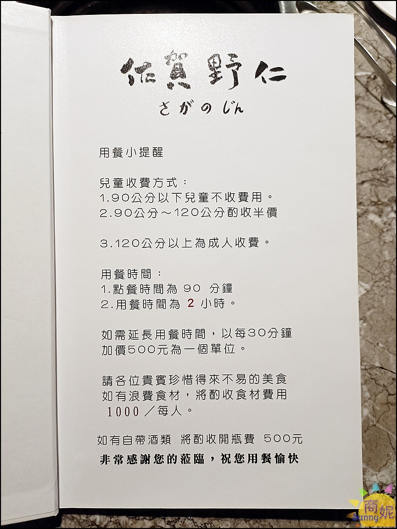 用餐時間2小時,小朋友的收費方式有詳細說明。
