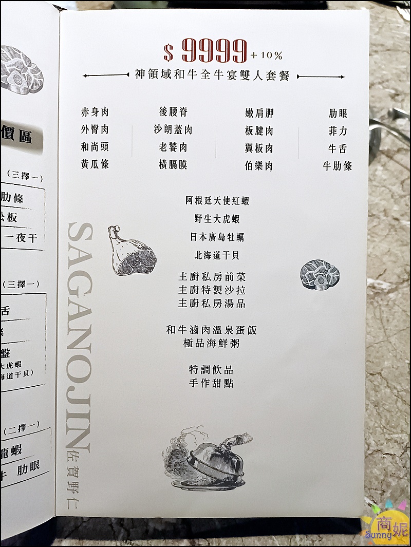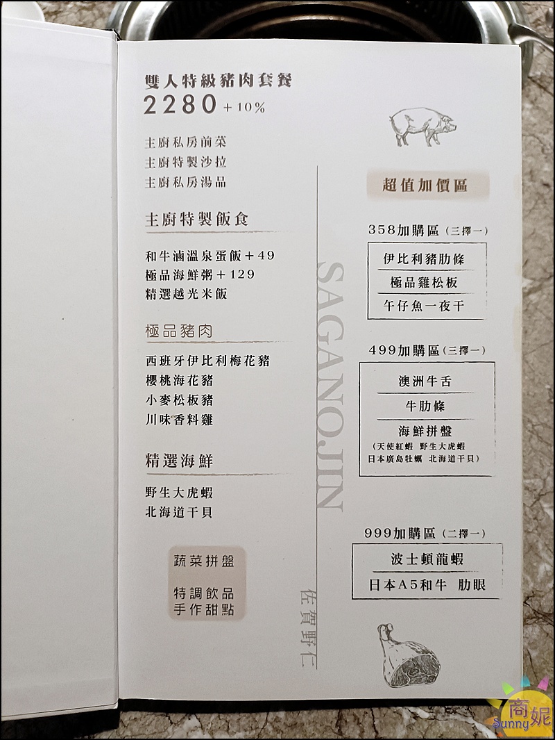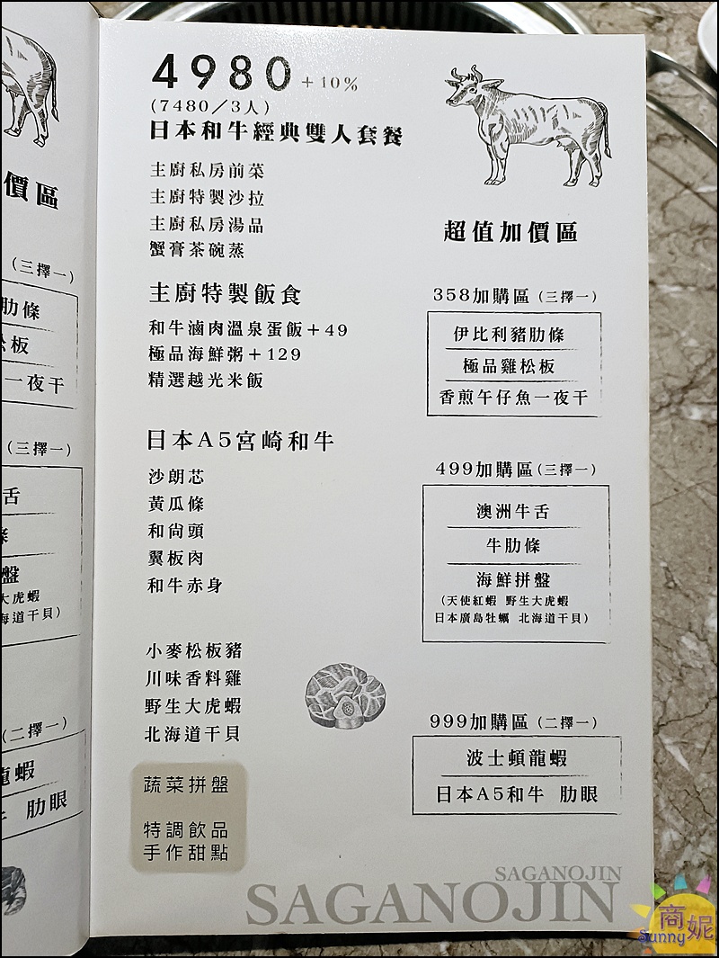 最近去用餐發現之前的菜單已經更新,除了原有的A5和牛吃到飽,又新增了單人、雙人頂級燒肉套餐。本文一併換上最新菜單給大家,快來看看佐賀野仁最新菜單。