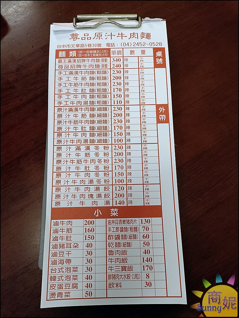 - 店家名稱:尊品原汁牛肉麵逢甲店