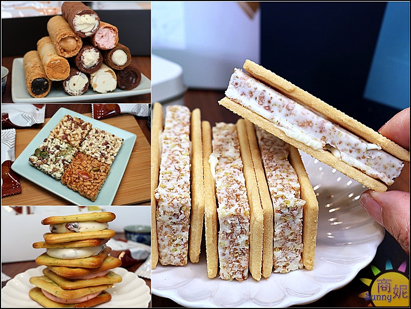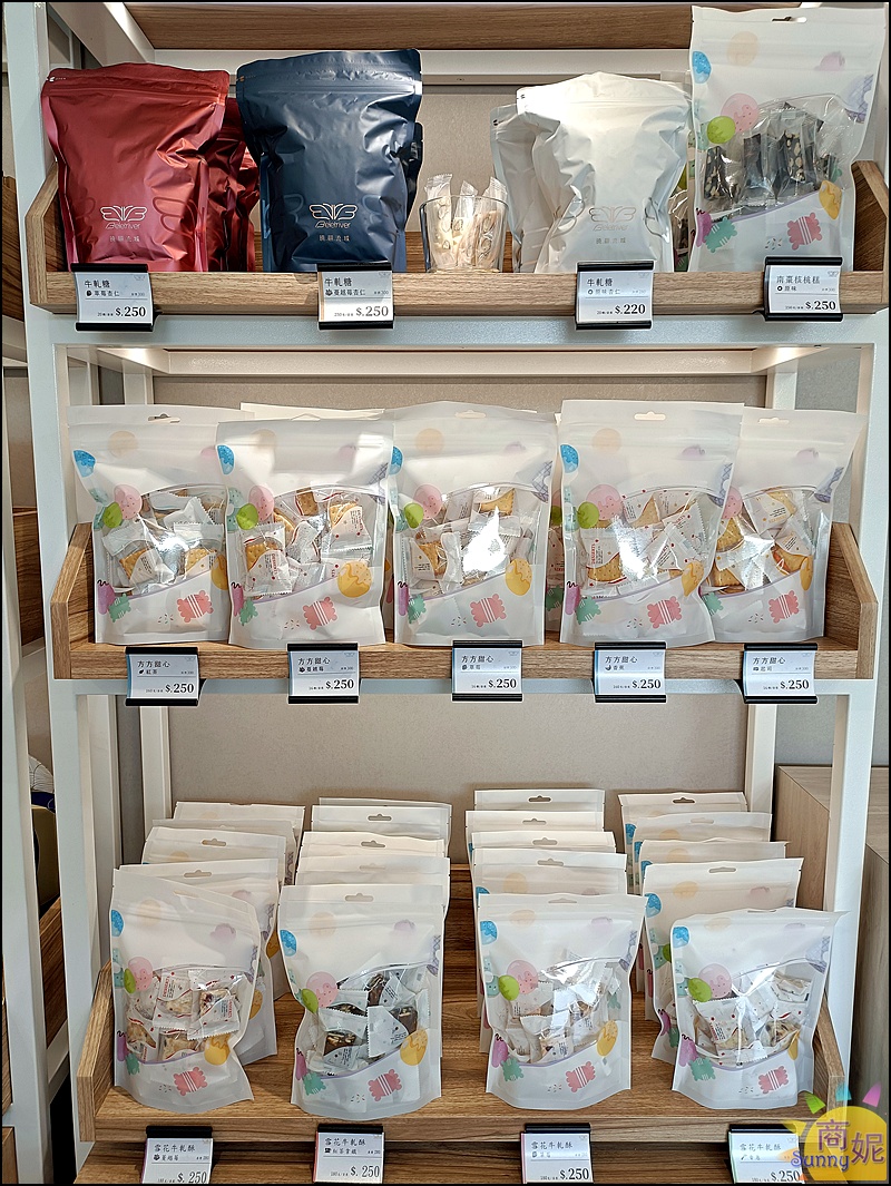 除了最招牌的厚餡夾心、滿餡蛋捲之外,還有牛軋糖、雪花餅、米果、蘇打夾心、雪花牛軋、方方甜心、曲奇餅乾、南棗核桃糕…品項眾多,有些招牌口味一上架就被搶購一空,建議要去之前先預約保留才不會撲空喔~
