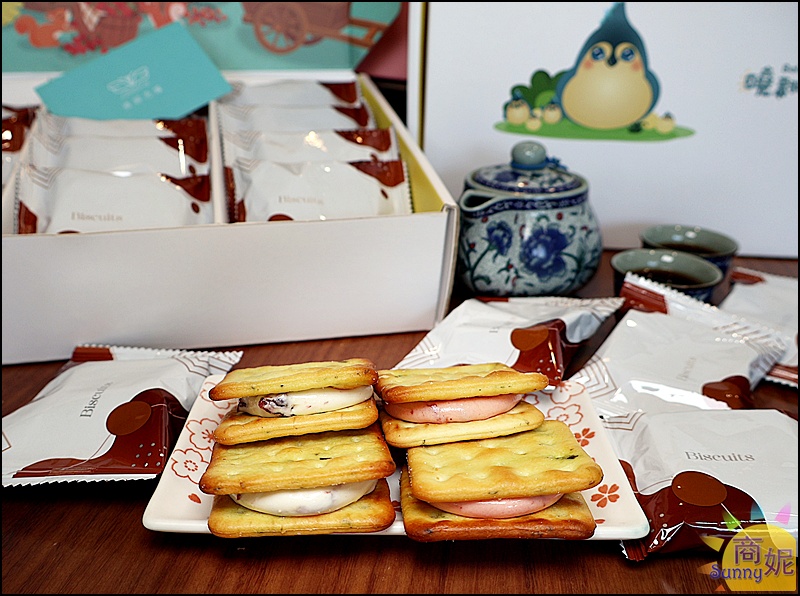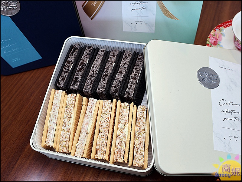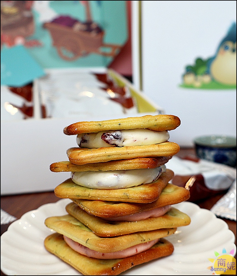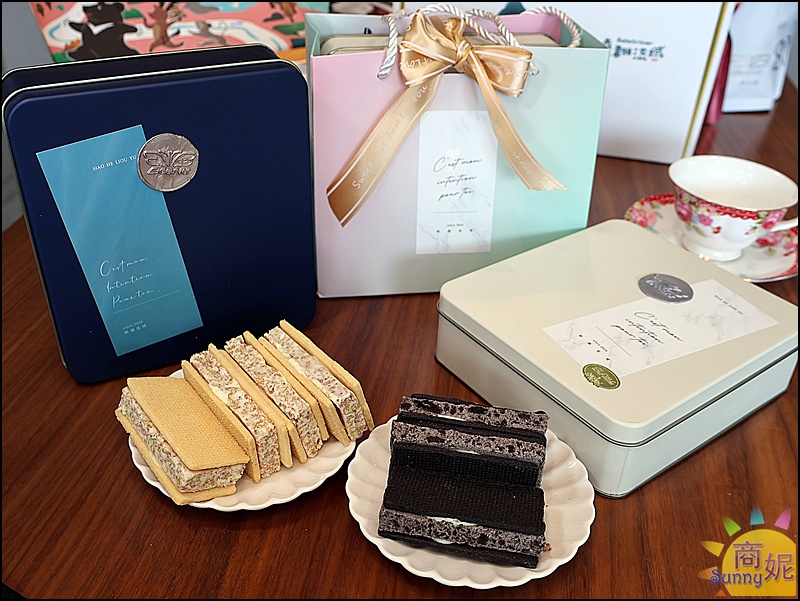 曉翮流域最招牌也是最特別的就是厚餡夾心,鐵盒包裝非常精緻,有兩款外盒連提袋都好美,買這個送禮肯定非常受歡迎。