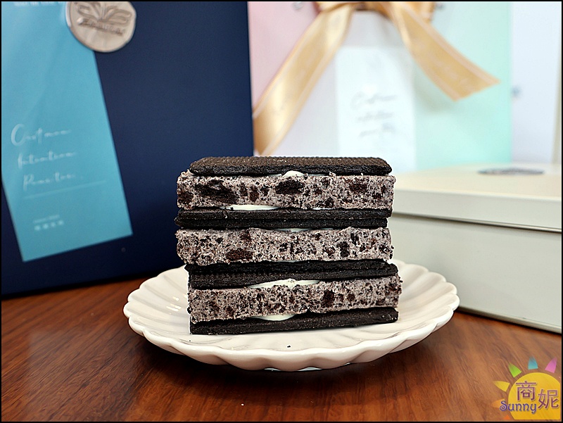 外層餅乾是黑可可加上竹炭粉製作,帶點微微鹹度,鹹甜鹹甜單吃就很好吃。