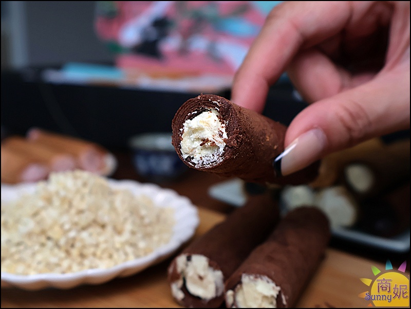 整個蛋捲內餡滿滿都是牛奶巧克力與顆粒草莓,酸酸甜甜又吃的到草莓果肉,這一款是我個人最愛第一名。
