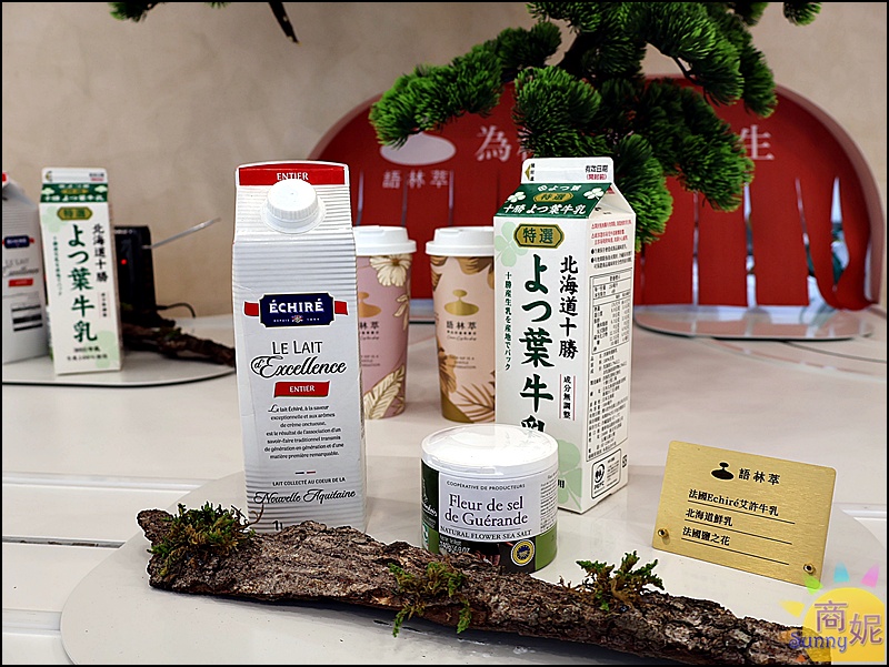 檯面上展示語林萃的頂級用料:選用有奶油界的愛馬仕稱號的法國艾許牛乳,再加上法國鹽之花及太妃糖,做出來的鹹/甜兩種風味厚奶蓋都超好喝。