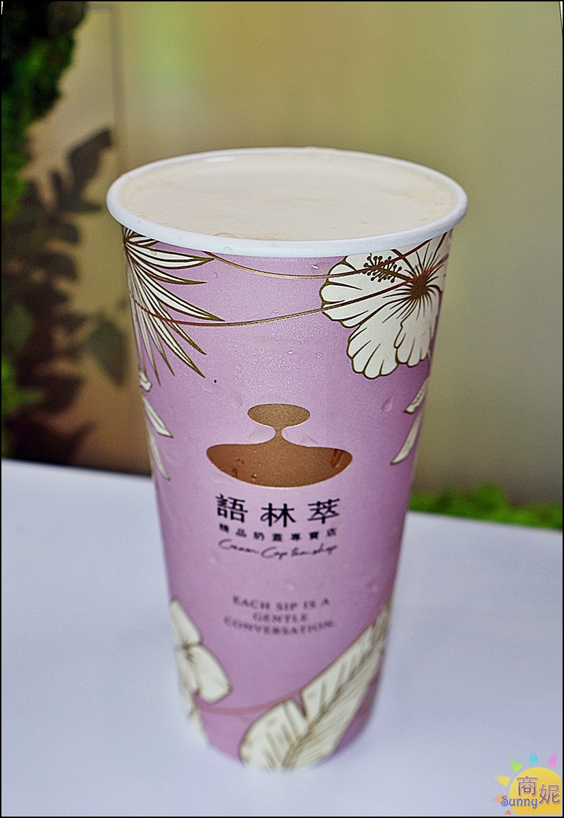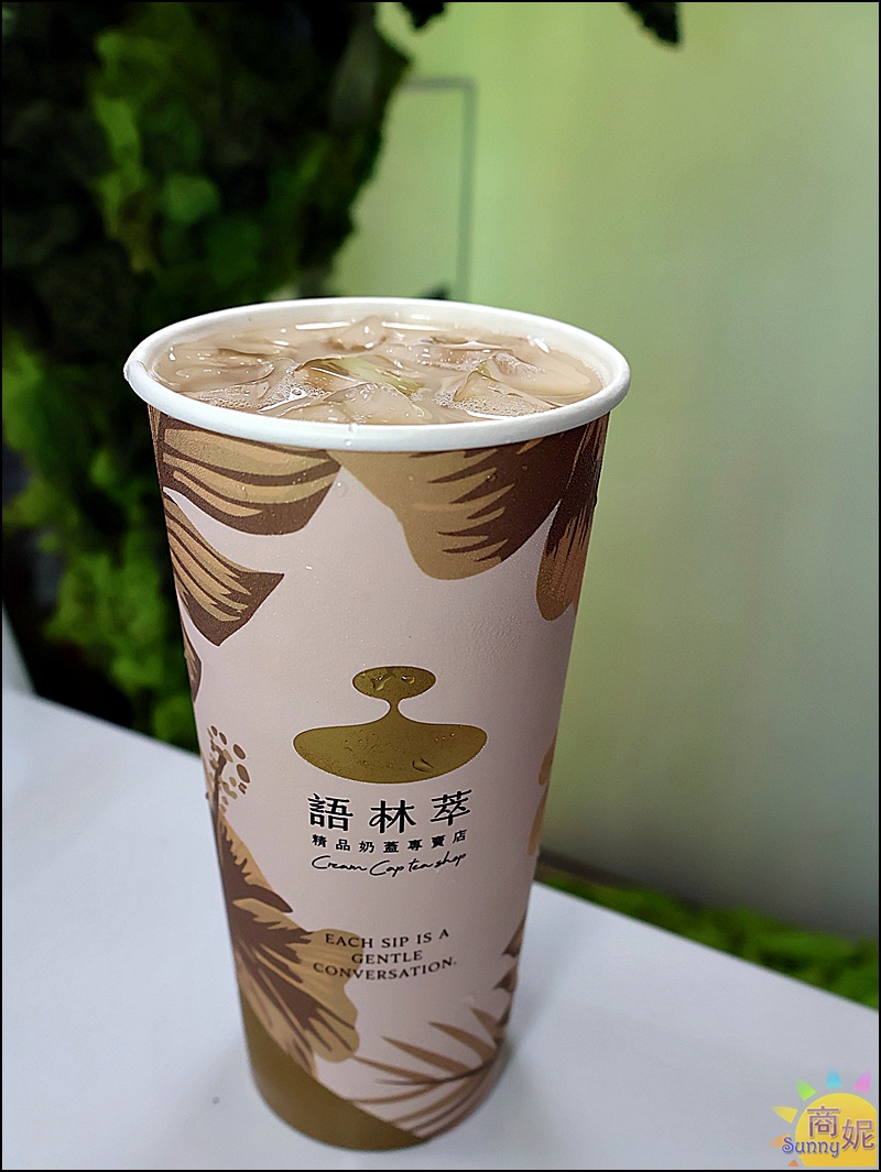 一般茶飲店奶蓋都是鹹與甜混和一起,語林萃的奶蓋可以選鹽之花(鹹味)/太妃糖(甜味),這一杯我們選甜味太妃糖。焦糖香氣與艾許奶油真的很正點,香甜滋味我個人很愛,奶蓋控推薦必點。