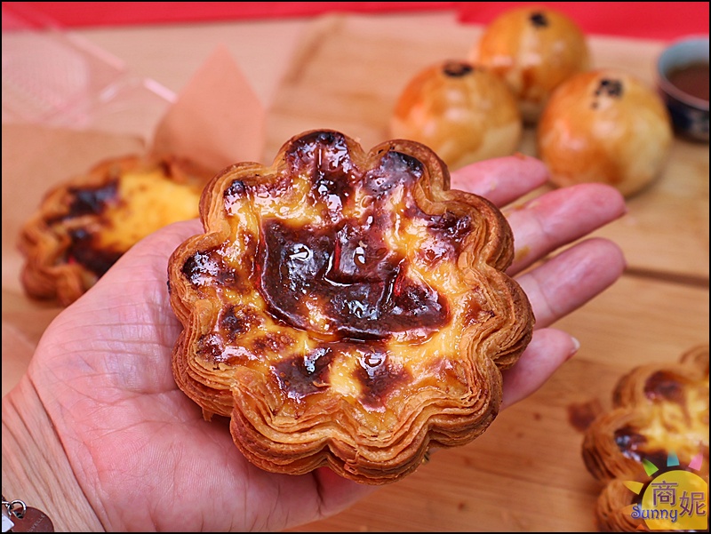 蛋黃家大智店獨賣的花朵蛋塔也是每天現烤,香氣真是迷人,飽滿的蛋塔剛出爐時圓嘟嘟澎起的模樣超可愛。