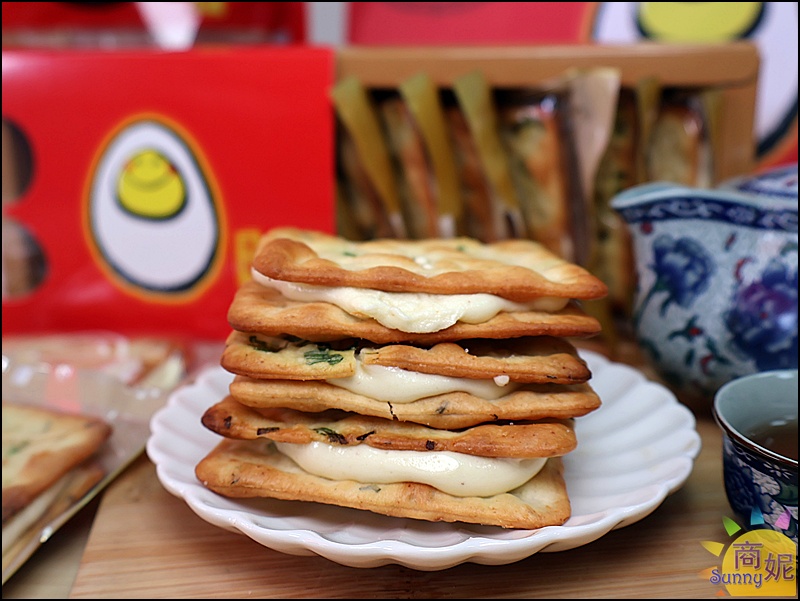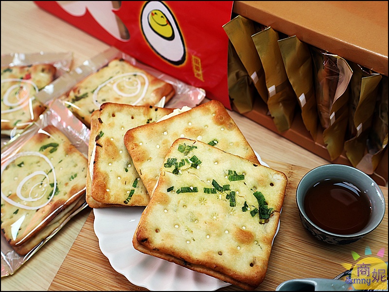 香酥蘇打餅上有好多鹹香台灣青蔥,夾入濃郁牛軋糖,鹹鹹甜甜的滋味,越吃越涮嘴,是下午茶、辦公室零食的最佳選擇。