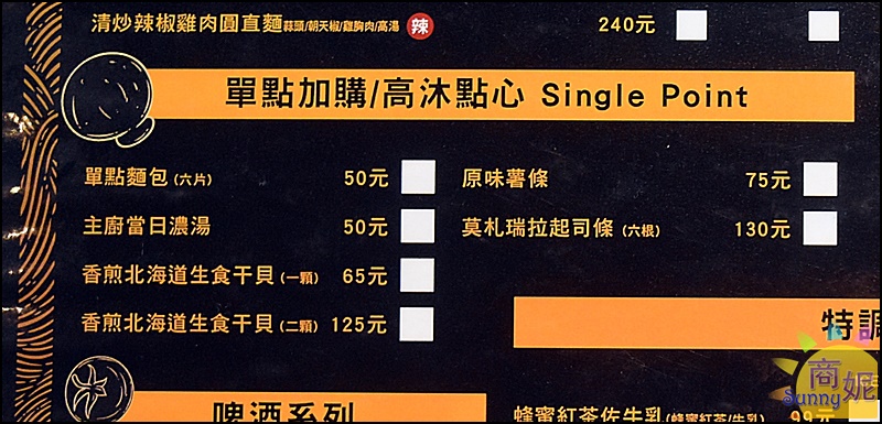 這一區的菜色都是主廚研發的創意口味,價位大約300~400多元,可以加價升級變成雙主餐、三主餐更豐盛,而且加價可以隨意搭配選擇更多元。