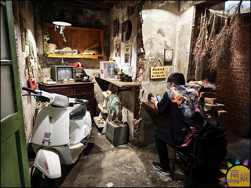 保留老宅的牆面再加上植栽牆、吊飾,整個非常有特色,呈現廢墟的神祕感氣氛超棒。