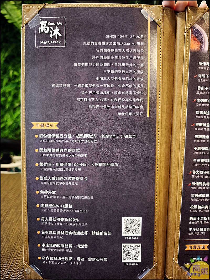 我有拍下整本菜單,請參考請參考高沐菜單(備註:菜單有可能變動,請依現場公告為準。)