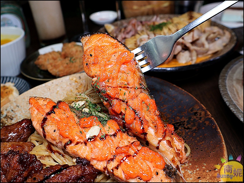 8盎司焦糖鮭魚排麻辣青花椒義大利麵+骰子牛4盎司