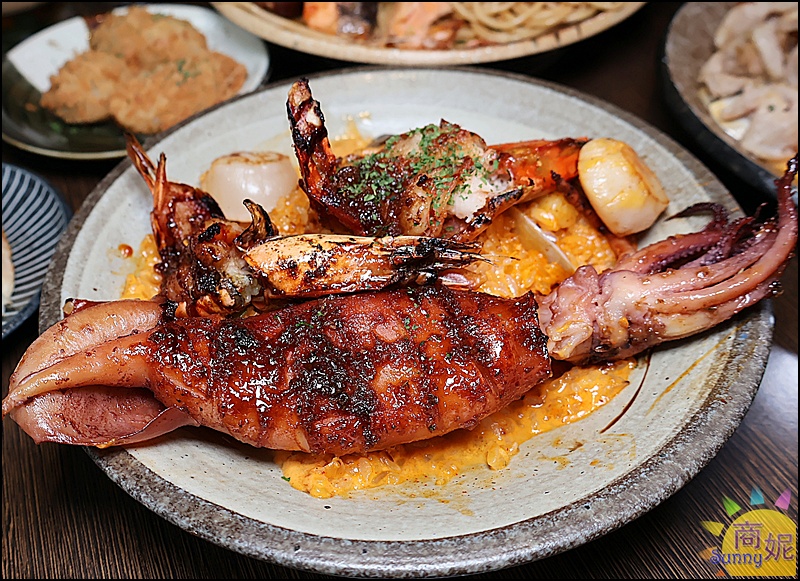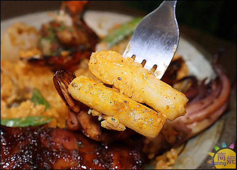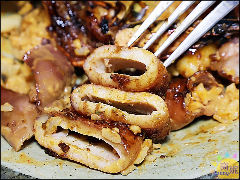 一大隻新鮮魷魚份量十足,舒肥過再經過碳烤,軟嫩帶有些微Q度越咬越香,口感也超棒!