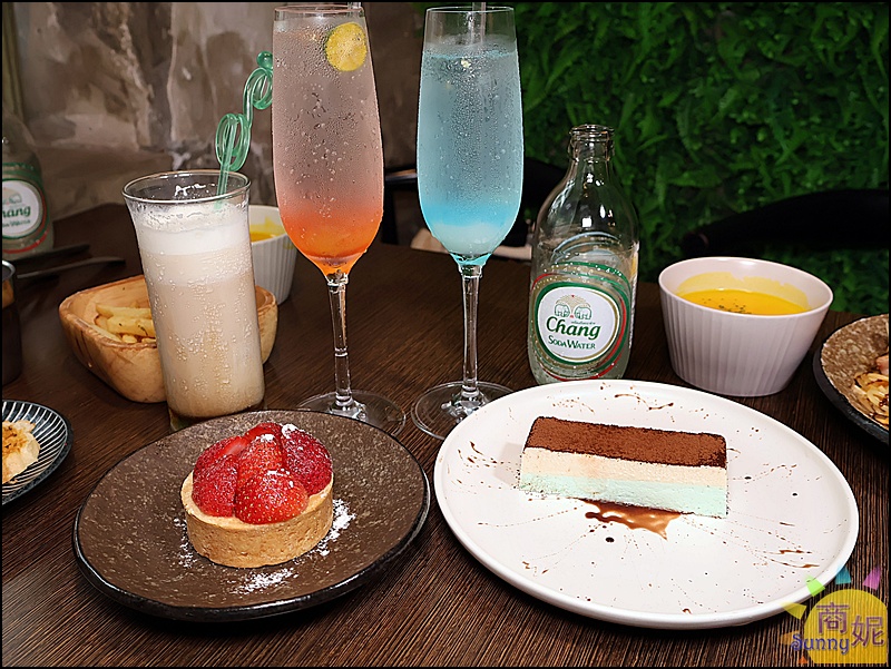 特調櫻花果露為主,再加上現擠柳橙汁、檸檬汁、鮮桔汁,搭配一整瓶品牌氣泡水,漸層色澤好漂亮。