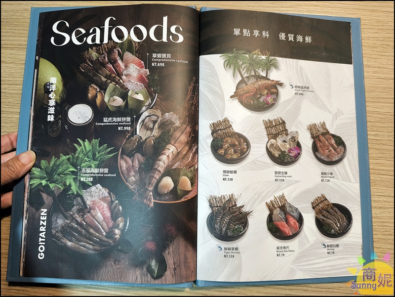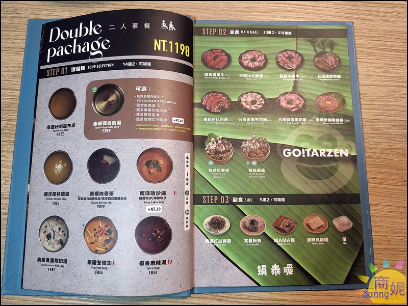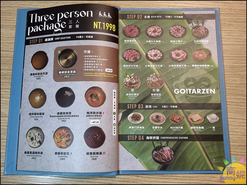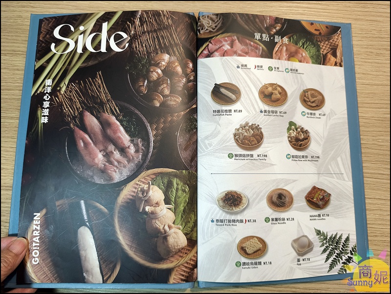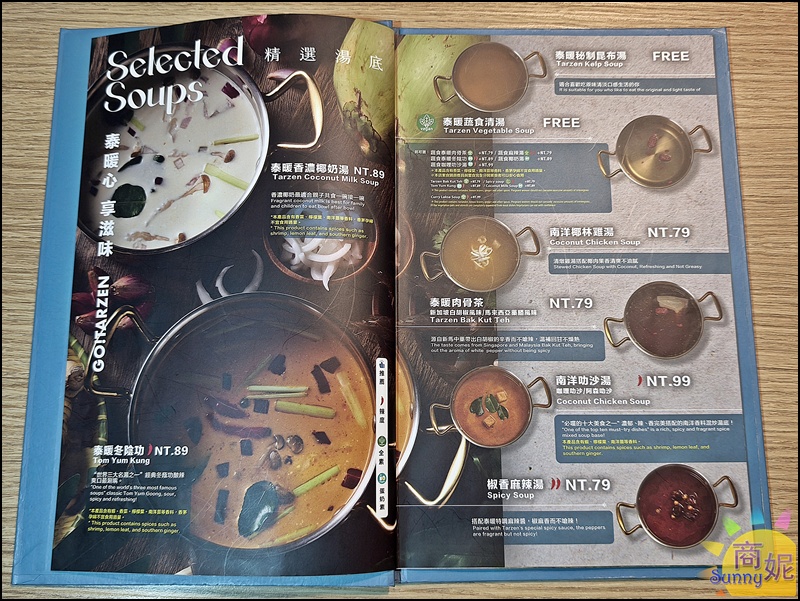 湯底有8種選項,基本兩款昆布湯及蔬食湯不加價,其他南洋風味湯底須加價79-99元不等。