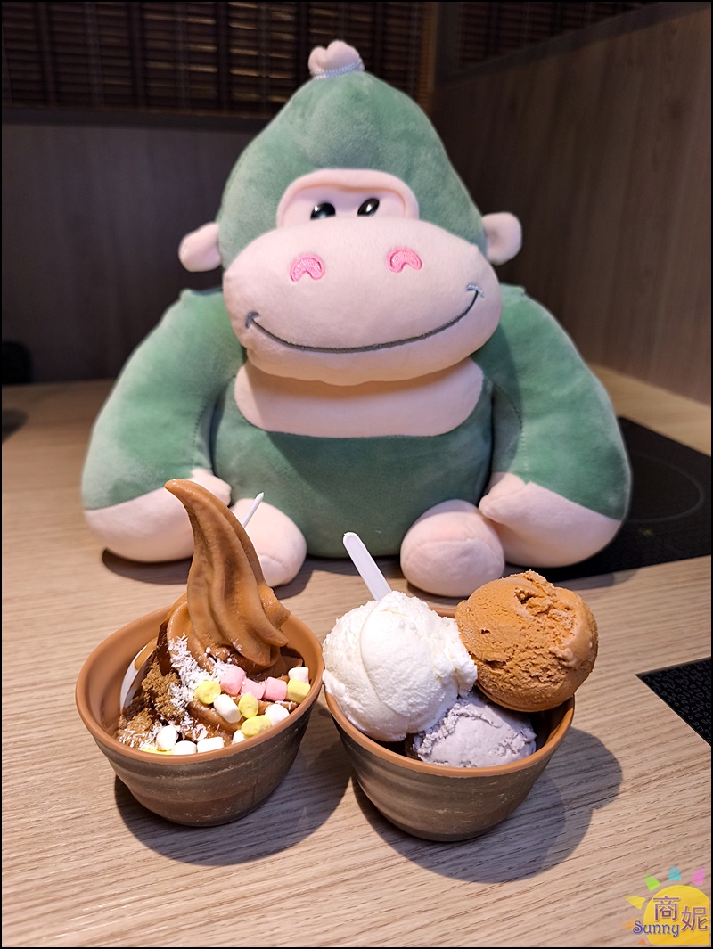 泰奶霜淇淋濃郁好吃,旁邊還有各種配料,棉花糖、椰子粉、黑糖粉、芒果醬、餅乾、巧克力米…自己DIY加料好吃又好玩。