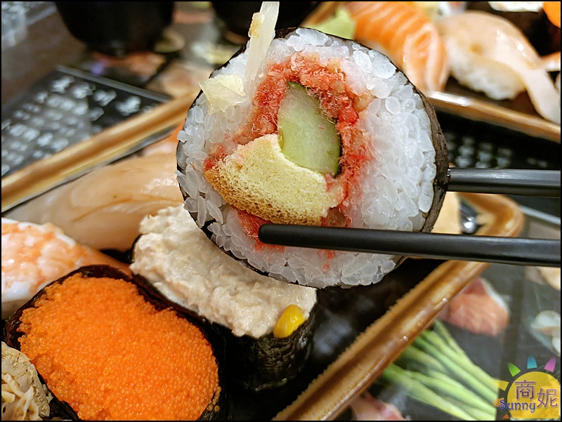 算是比較基本款的壽司捲,中間有包了玉子燒跟蝦卵,米粒Q彈越咬越甜。