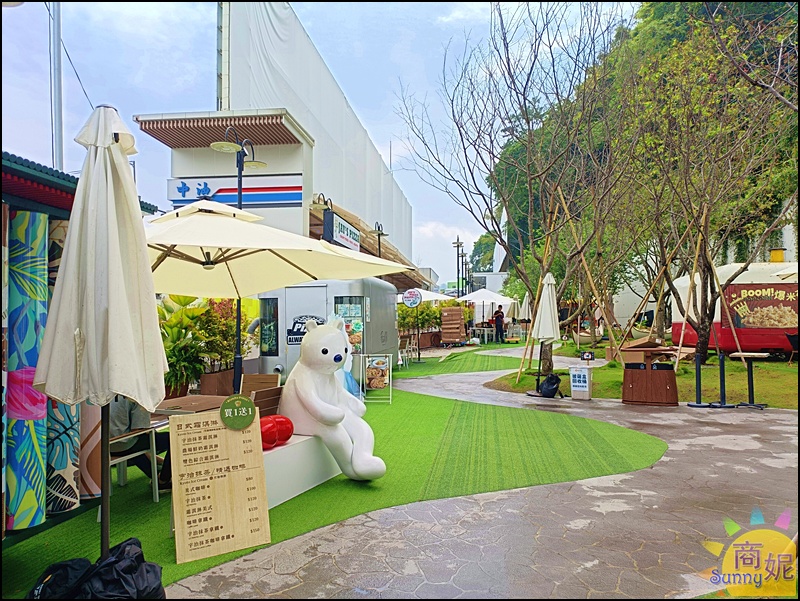特色餐車本身就很好拍,旁邊擺放露天咖啡座位區,還有可愛的白熊喔~