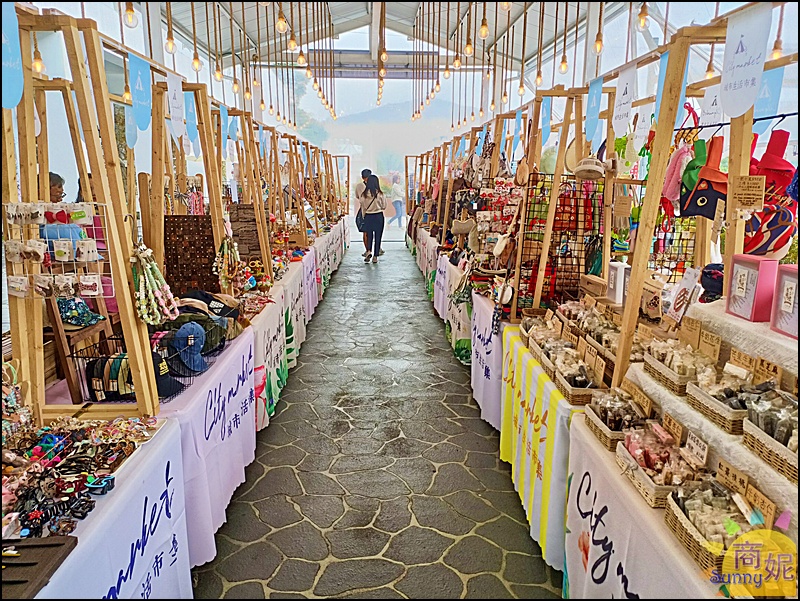 除了每層樓的固定店面,走廊上還有眾多特色攤位,都是南投在地的特色店家集中在日月町,不用到市區一家一家跑,在日月町一站就能通通看到。