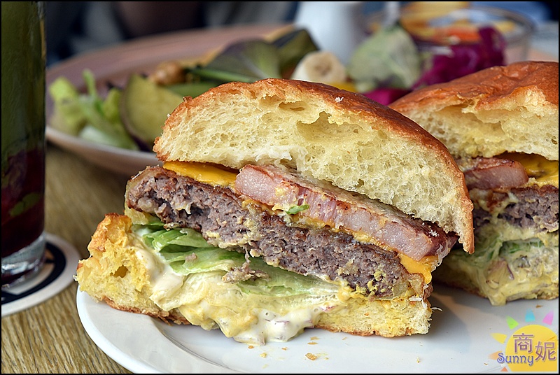 切開起司漢堡拍張特寫給大家看,厚厚的漢堡肉及厚片培根,包夾濃郁起司,滋味超棒!