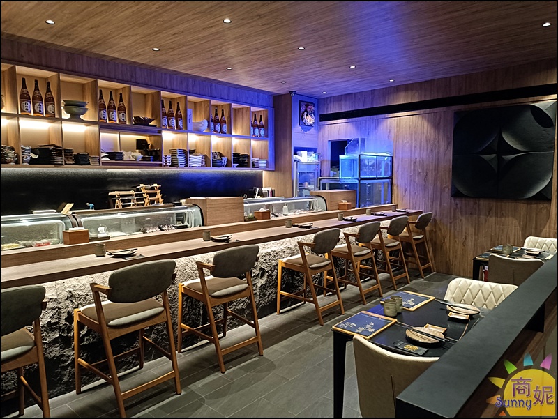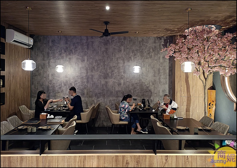 桀壽司一樓為板前席及4人方桌座位區,靠近門口還有櫻花樹漂亮極了,整個空間相當有質感。