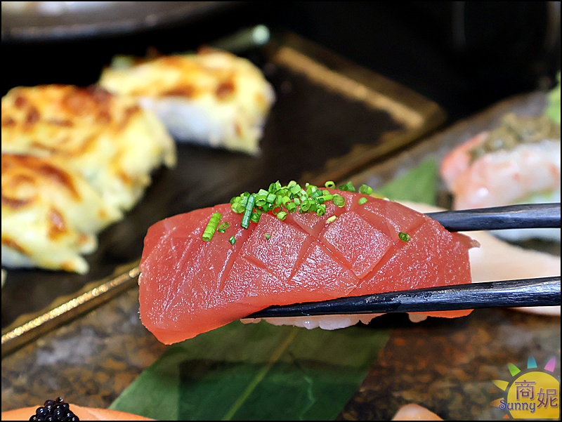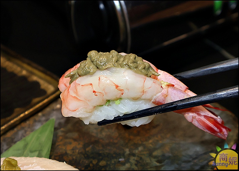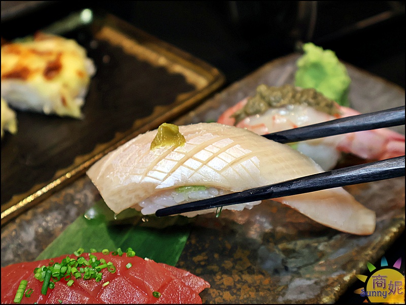 青魽肚握壽司滋味好甜,搭配上頭的芥末胡椒醬提味,超好吃!