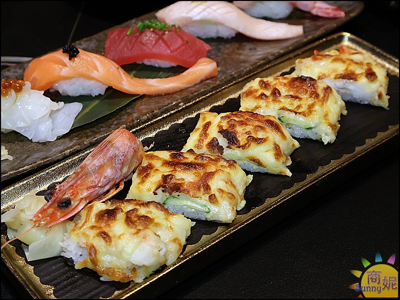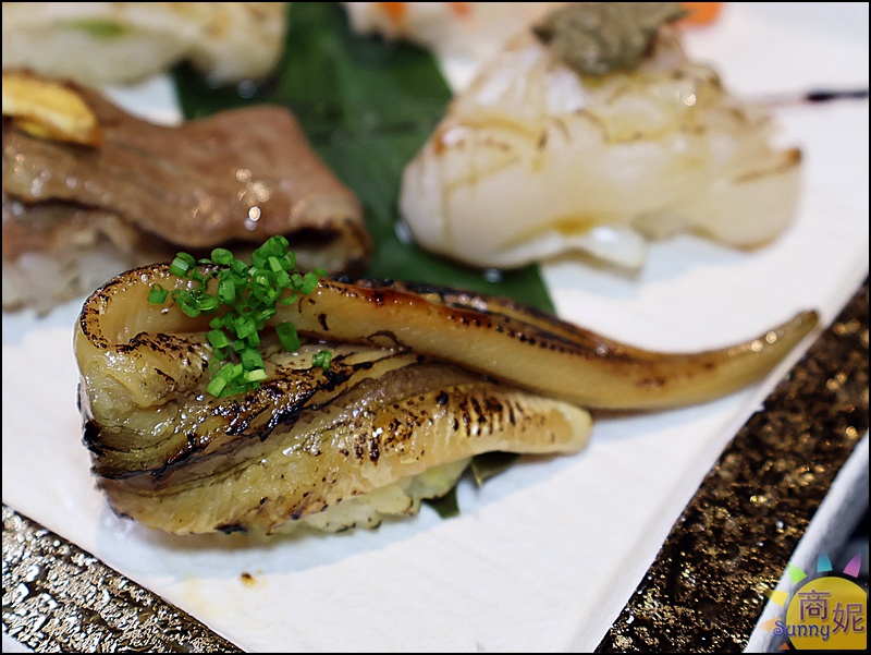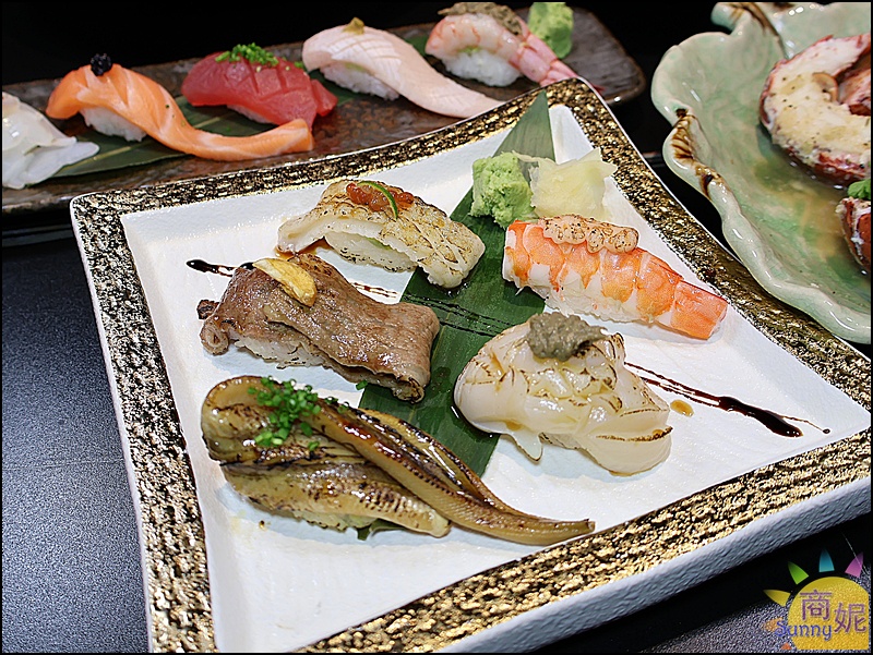 不敢吃生魚片的朋友,推薦點這一道炙燒握壽司,整尾星鰻、安格斯牛肉、北海道大干貝佐松葉蟹膏、比目魚鰭邊肉佐鮭魚卵、大白蝦佐明太子醬…用料也是很豪華。