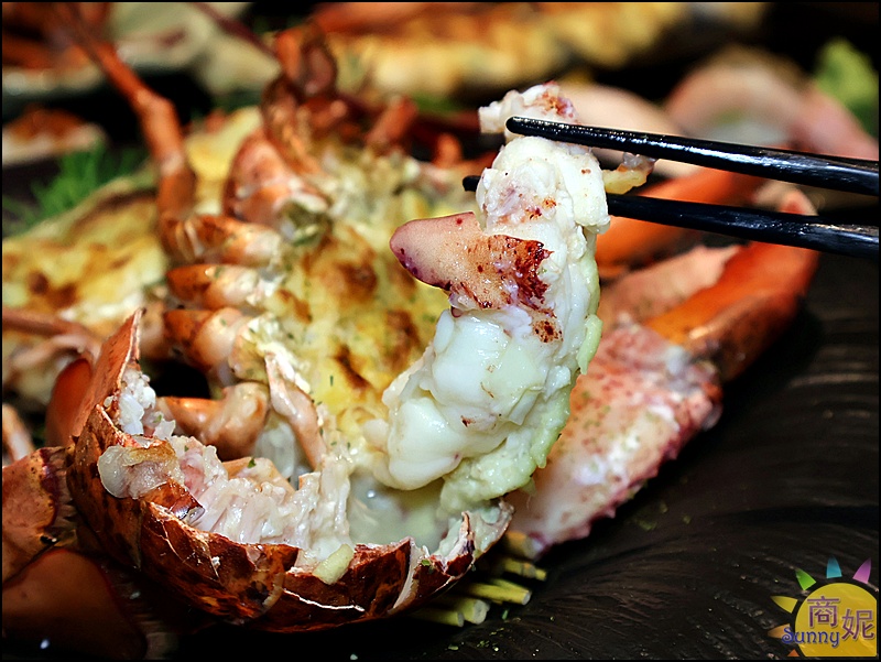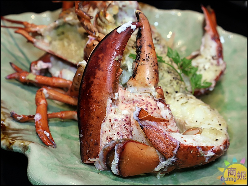 看蝦螯就知道龍蝦肉質有多肥美,松露焗烤的鮮甜海味美味度不輸蒜蒸的喔~
