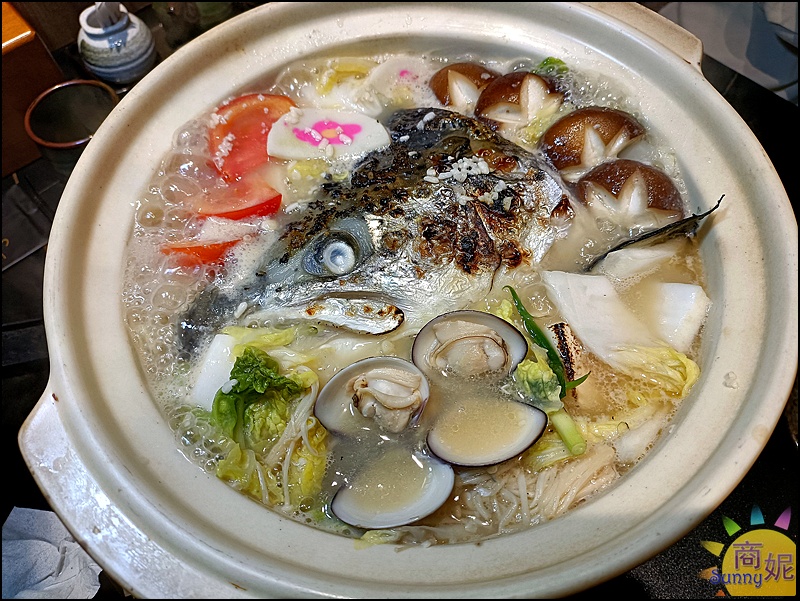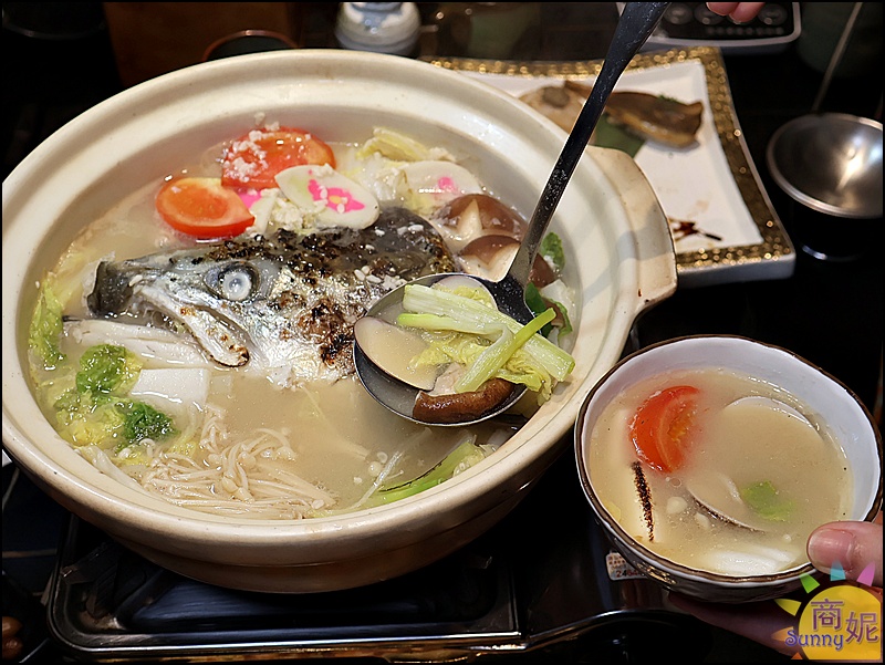 味噌湯頭有酒釀加持特別香甜好喝,魚頭上面有像米粒的東西就是酒釀,真材實料味道超讚。