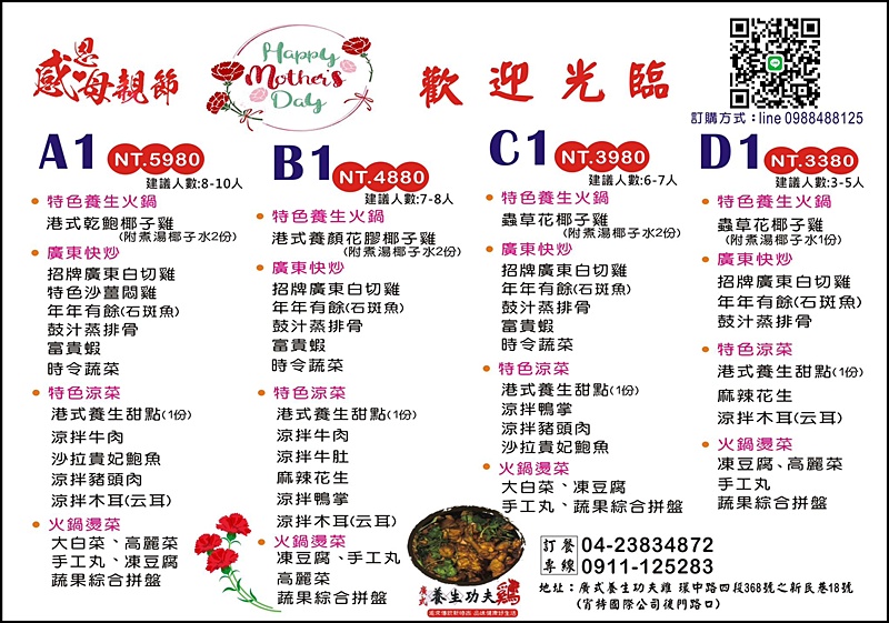 廣式養生功夫雞菜單有單點也有合菜,點合菜最划算,2800元就很豐盛。