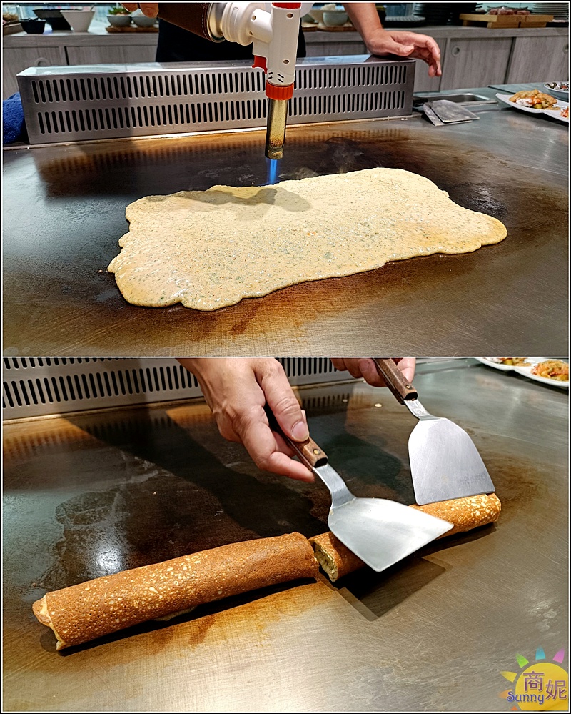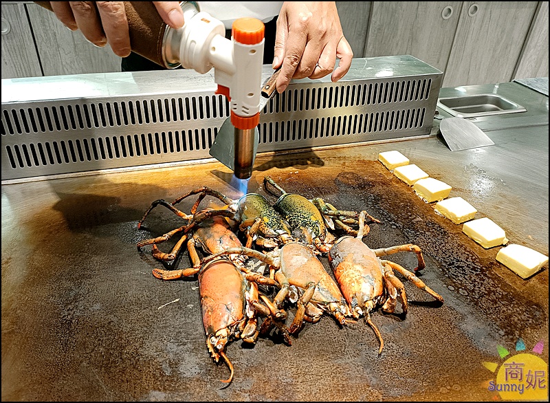 龍蝦膏混合蛋液、鮮奶油在鐵盤上香煎,炙燒後逼出蛋香與海味後再捲成蛋捲,近距離欣賞料理秀,真的是色香味俱全。