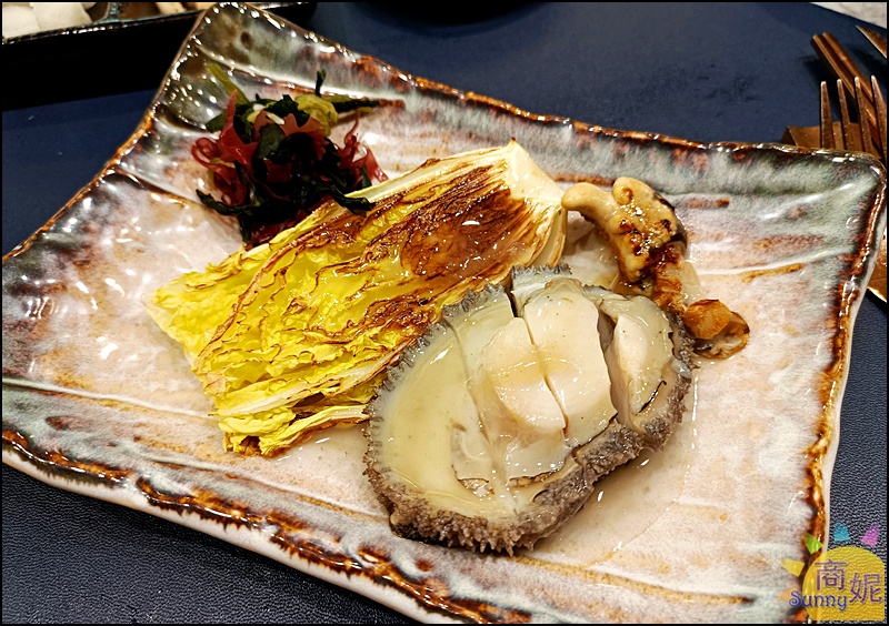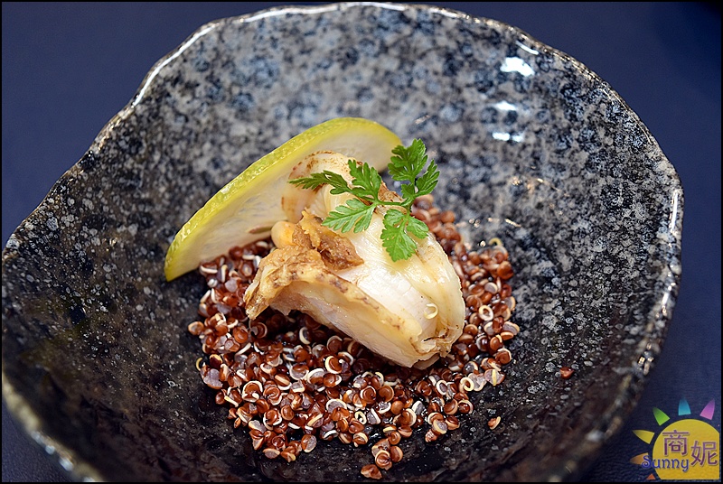 南非活鮑魚經過主廚獨特的鹽蒸料理手法,飽滿的肉質吃起來特別軟嫩,還帶有天然的鹹甜滋味。
