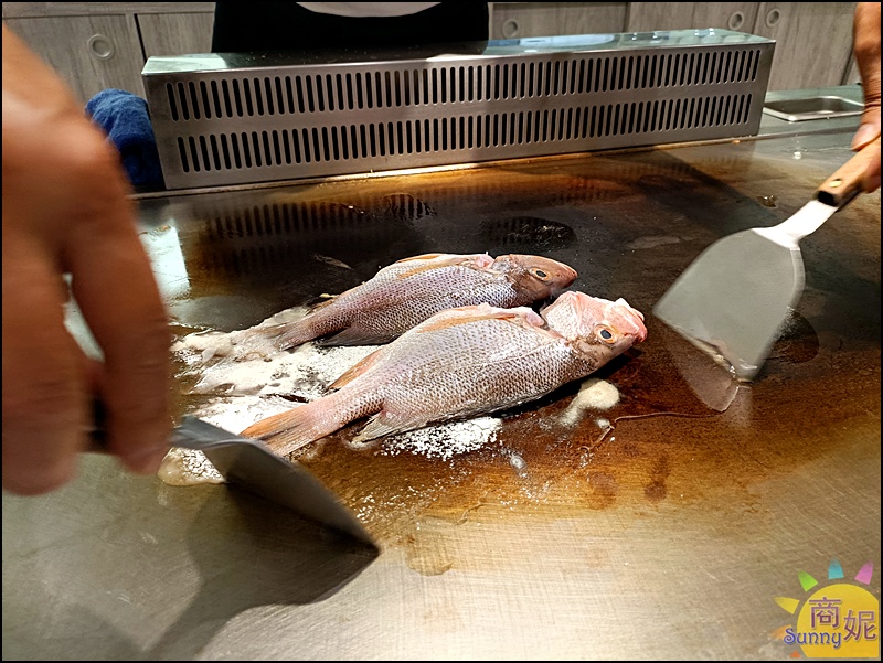 特別一提,現流魚每日產地直送,考驗師傅的食材挑選及烹調廚藝功力,明水然樂每天堅持使用整尾現流鮮魚,每次來吃到的魚種都不一樣,這一點真的跟一般鐵板燒餐廳大不同,值得掌聲鼓勵。
