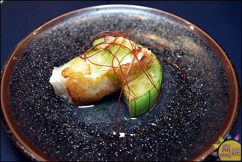 新鮮厚切的青衣魚口感QQ嫩嫩的,底下還有甘甜絲瓜,搭配海藻芡汁一起吃,味道很甜很好吃。
