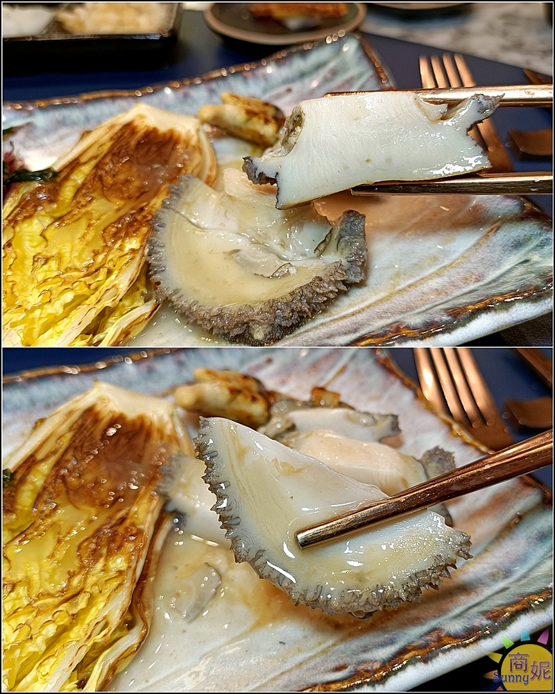 新鮮的南非白鮑魚上鐵板的時候還是活的,大顆飽滿肉質肥美,食材用料真的很頂級。