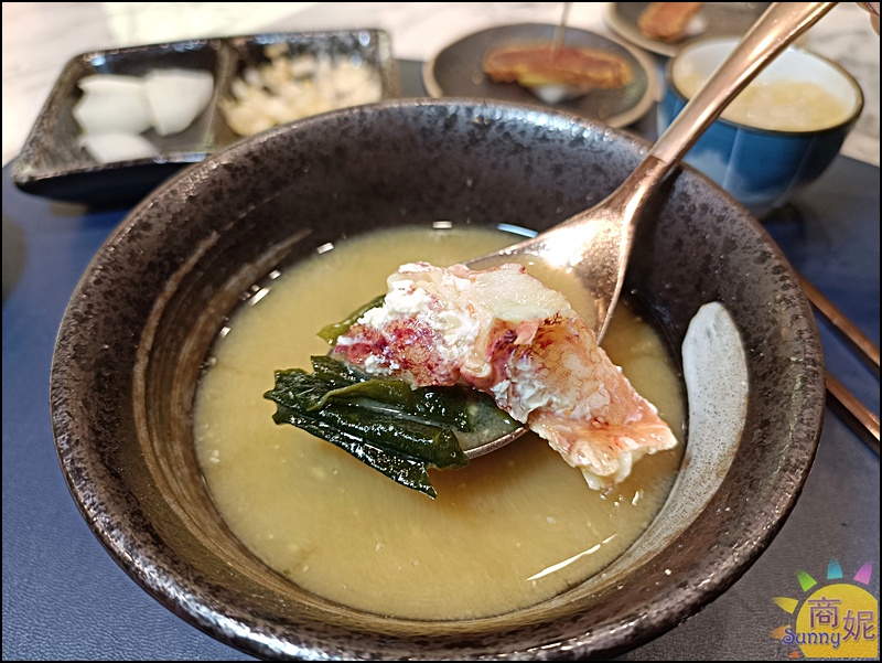 裡頭還有一開始炙燒龍蝦頭的蝦肉,一蝦三吃從最前面的蛋捲、中間的龍蝦肉、到最後這碗味噌湯收尾,真不錯。