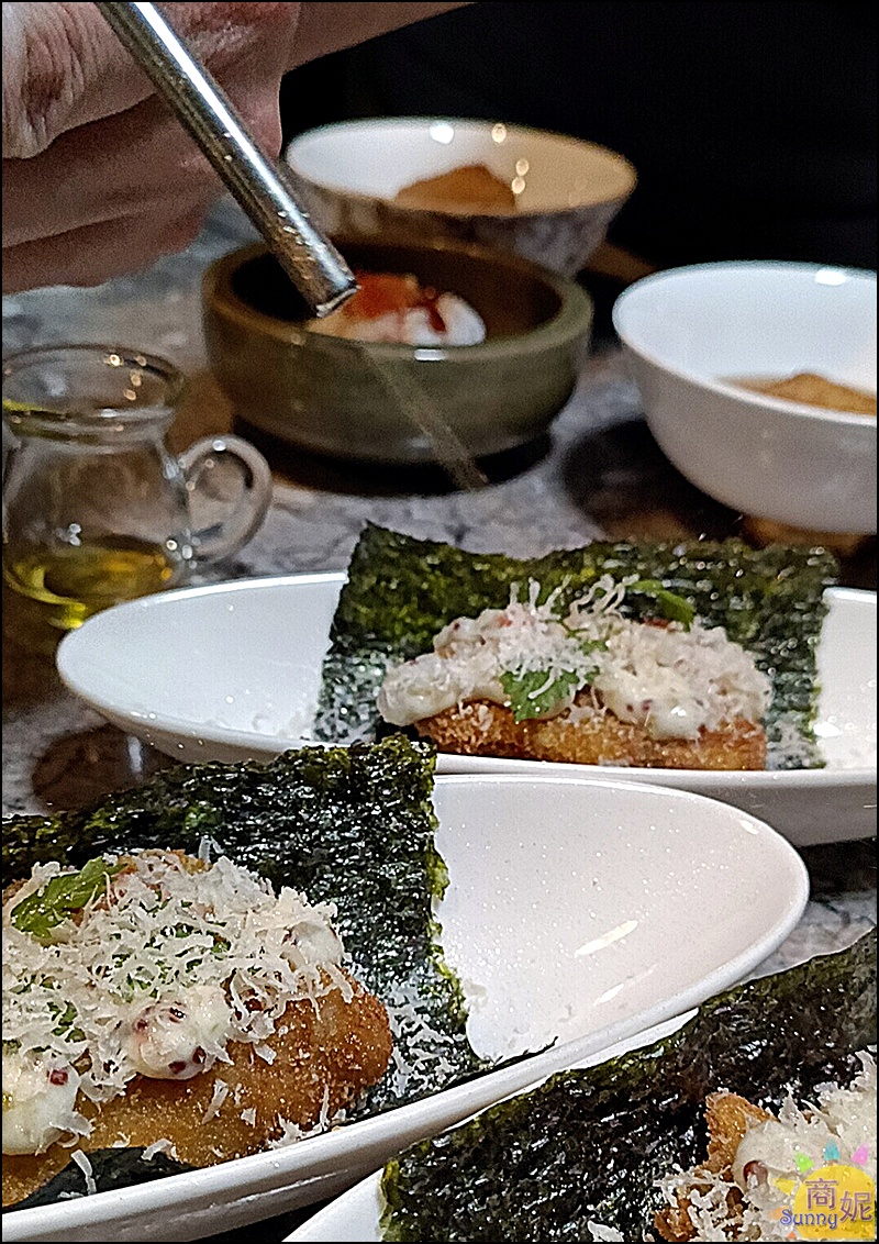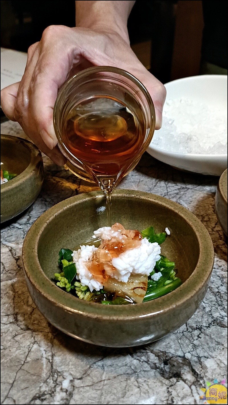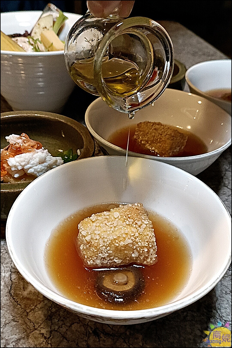 還有一道揚出豆腐也很特別,日式麵衣香酥脆,原本湯汁就好喝,最厲害的是淋上主廚特製椒麻油,滋味變得香麻帶勁唇齒留香,這一道也充滿驚喜。
