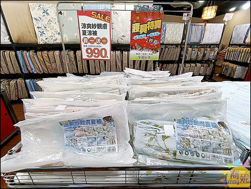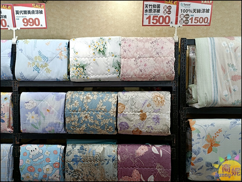 雖然網路購買也很方便,但是要運費又摸不到,而且網路花色常常失真,收到貨不喜歡退貨也麻煩,當然是到特賣會現場挑選比網路蝦皮還要划算多了。這次特賣推出好多款涼被買一送一超殺價格,買到賺到!