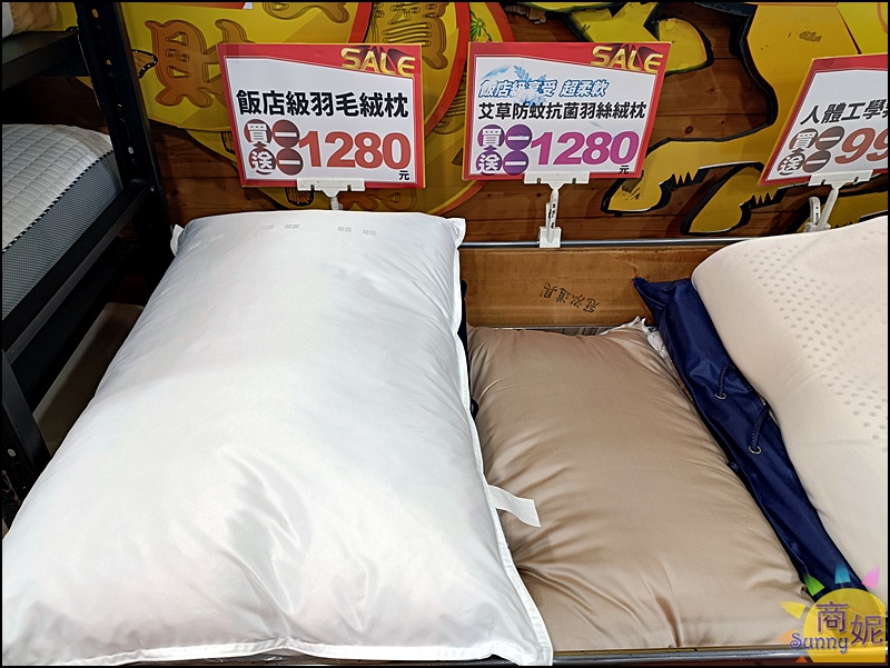枕頭買一送一兩顆990等於1顆不到500元,另外還有幾款買一送一1280也很便宜。