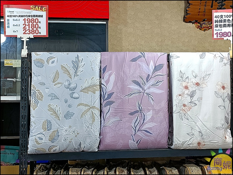 現場花色很多,天絲、純棉通通有。祝賀新居落成送禮或是新婚嫁娶都需要床罩組,可以趁特賣會便宜的價格先買起來預備,自用送禮都歡喜。