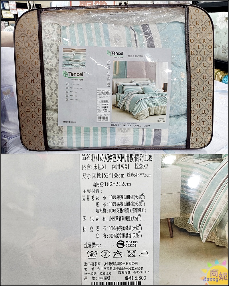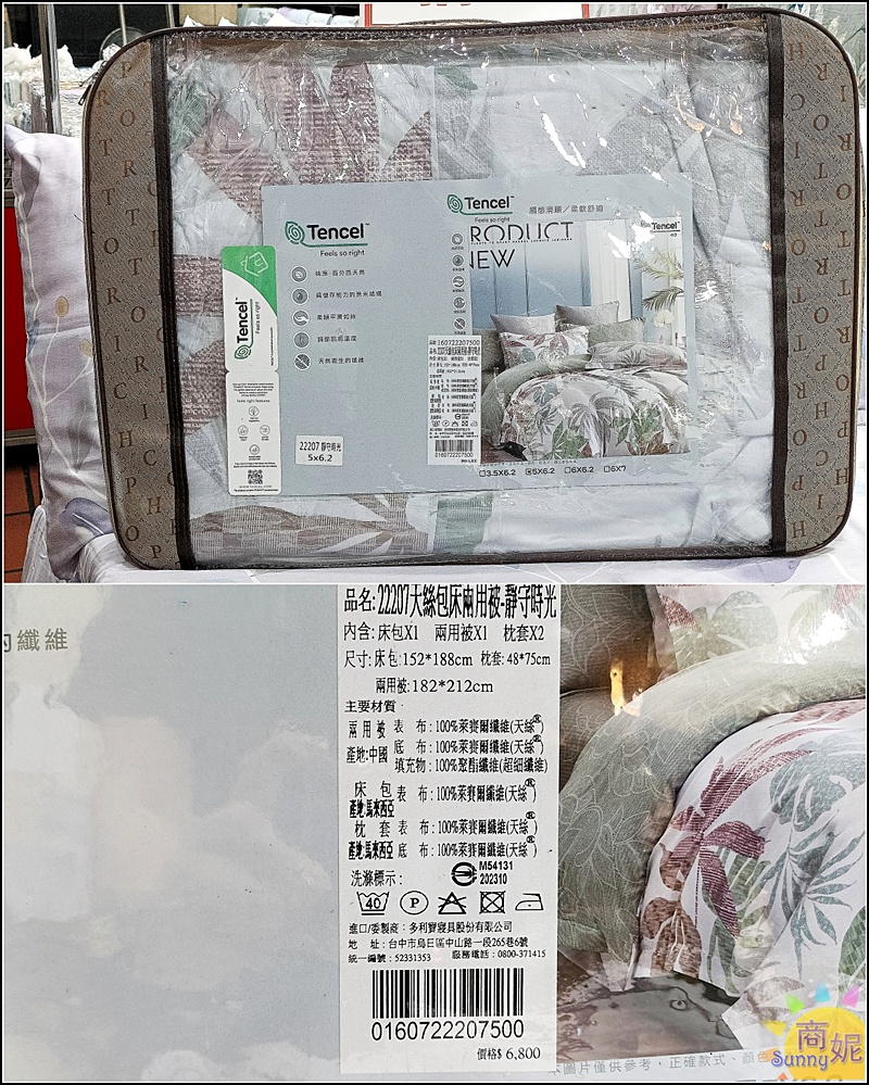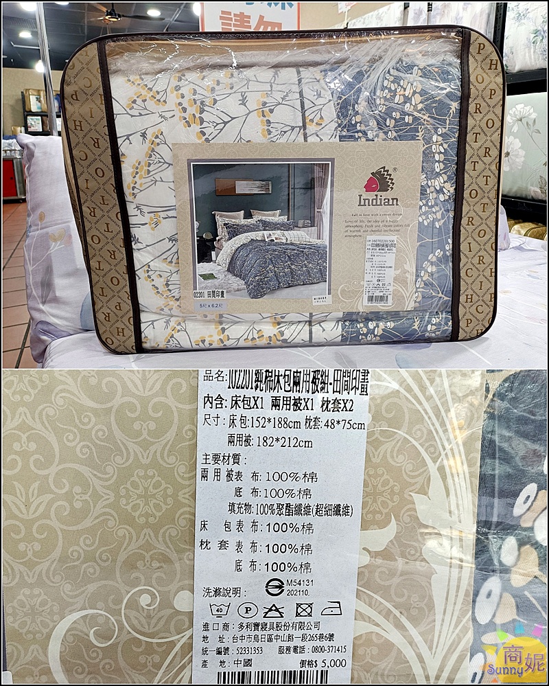 這款純棉床包一組4件,床包、兩用被、兩個枕套。表布跟裡布都是百分百純棉,現場款式跟顏色都非常多,原價5920元在這裡只要2280相當划算。