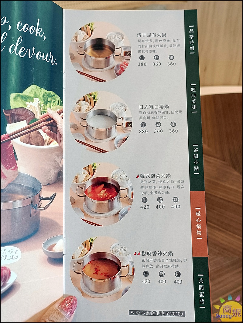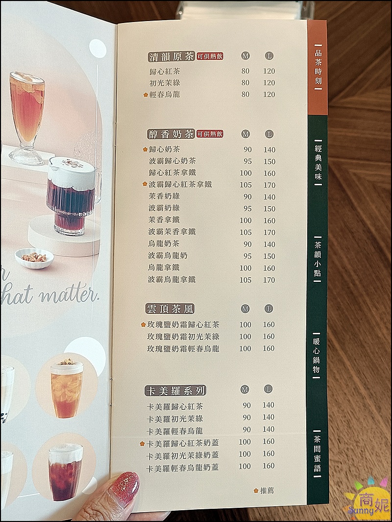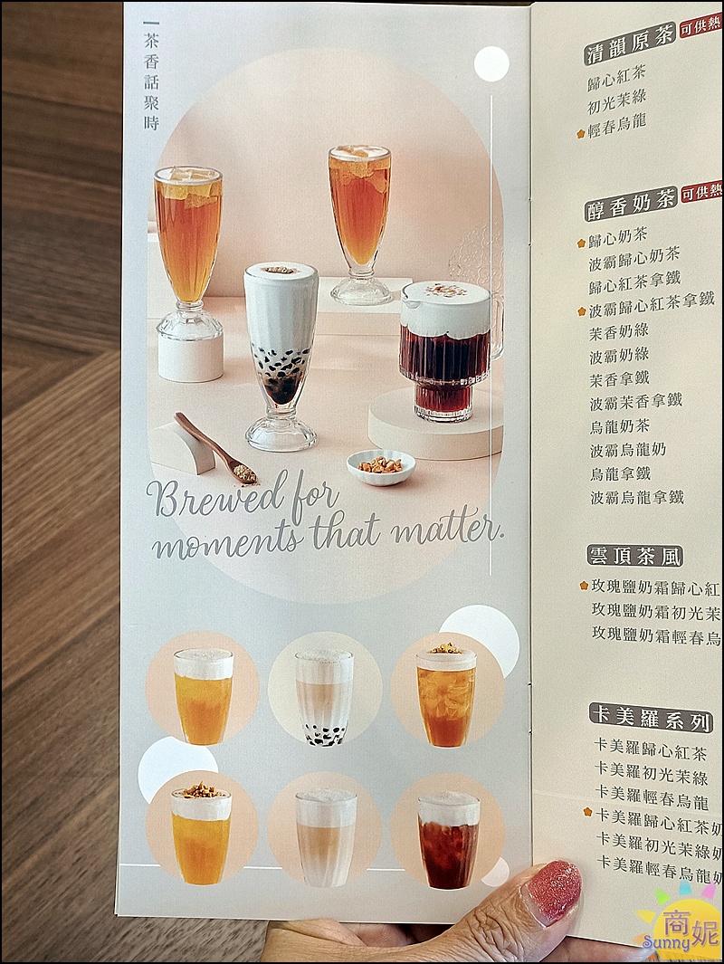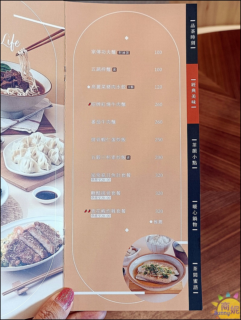 三茶六味菜單中選項多元,用餐加收10%服務費,每人低消一杯飲品,用餐時間90分鐘(無候位不限時)。