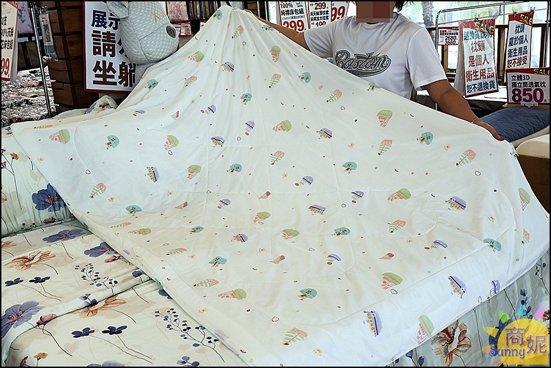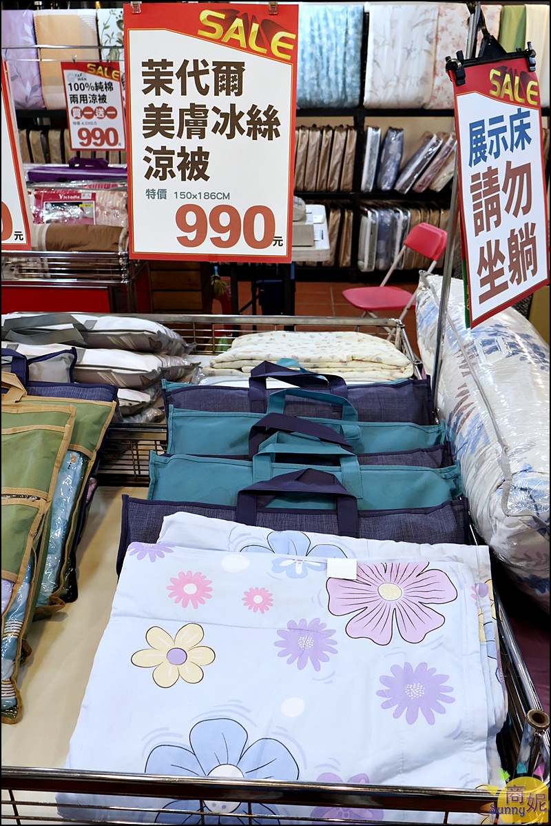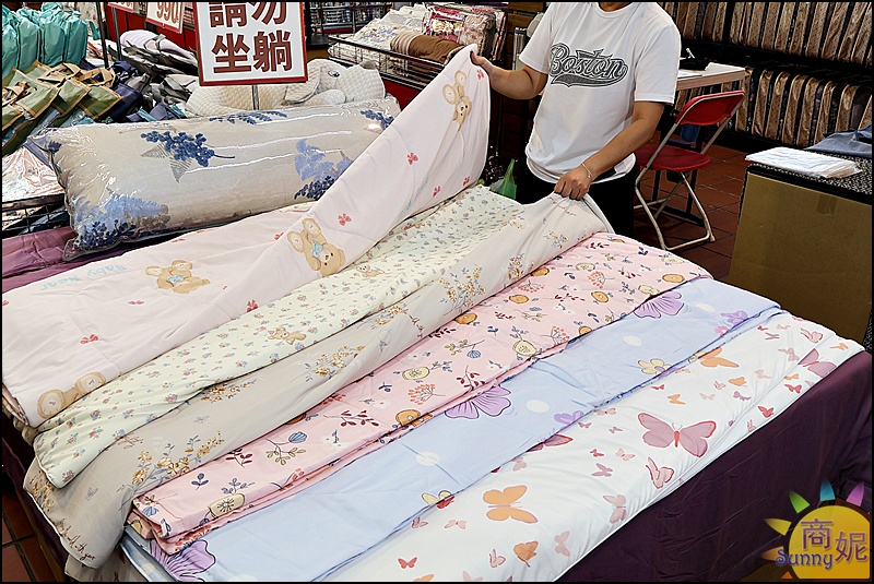 這次特賣的棉被超級便宜,現場都可以打開來摸摸看,質感都很棒,選好棉被再去花車區挑選被單,花小錢就能提高睡眠品質!!