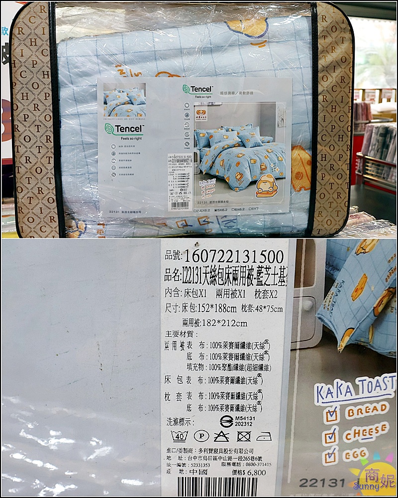 各種尺寸都有,內含一個薄床包、二個枕頭套,天絲材質原價2800現在不到千元就可以帶回家,價格很實惠耶。
