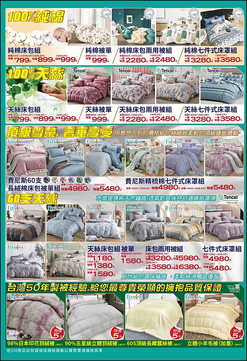 被單及素色床包組價格也很漂亮,這次費尼斯60支天絲系列史無前例超殺價格,注重睡眠品質的朋友,一定要趁便宜多買幾組。