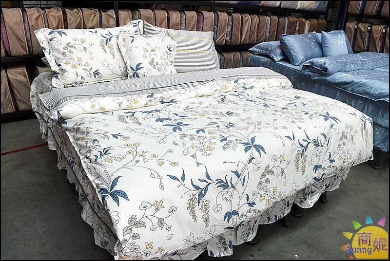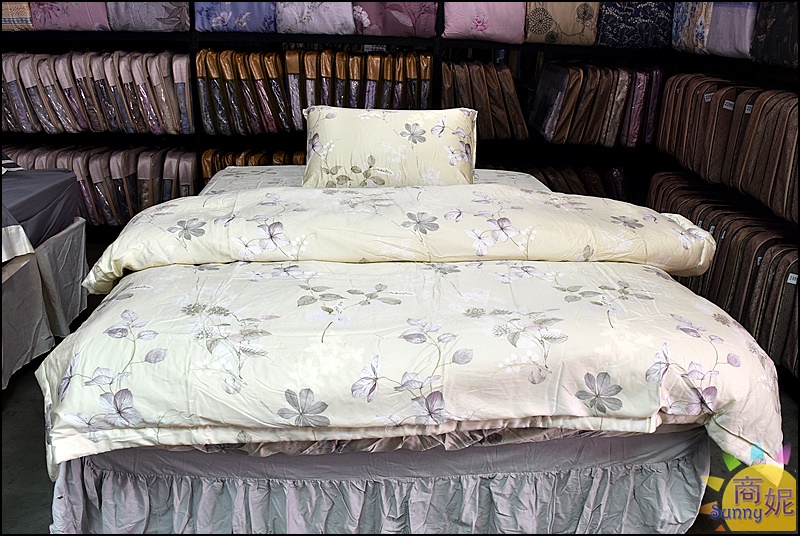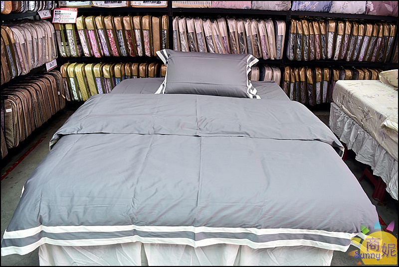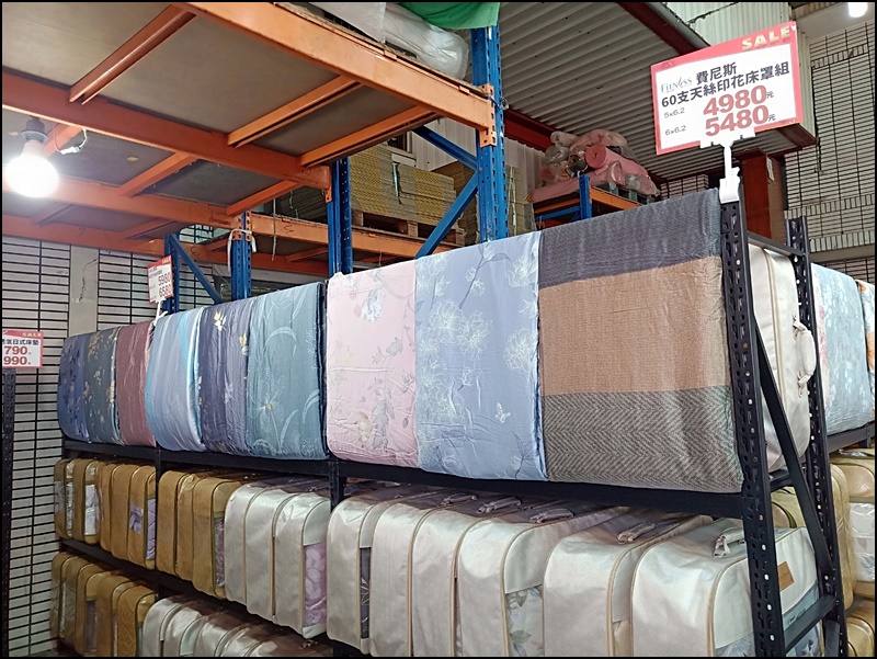 有許多床包被單被套組,每一款價格都非常漂亮,現場都能夠打開摸摸看觸感,比起網路商城摸不到,不喜歡還要退貨,這裡方便多了。