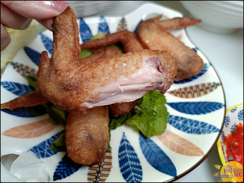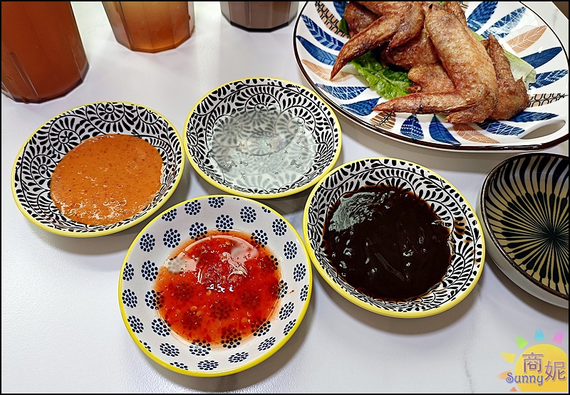 炸雞翅沒有裹厚厚的粉,炸到表皮酥脆不會油膩很乾爽,咬開來裏頭的肉質軟嫩多汁,搭配店家特製的魚露沾醬,微甜微鹹的滋味,越吃越涮嘴。