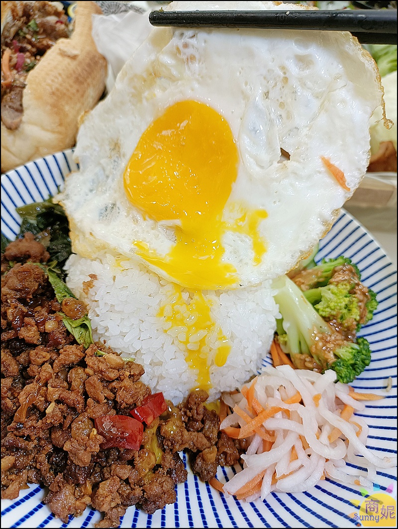 剪開半熟太陽蛋,金黃蛋汁流淌而下,淋在米飯上不僅畫面吸睛也好好吃喔~