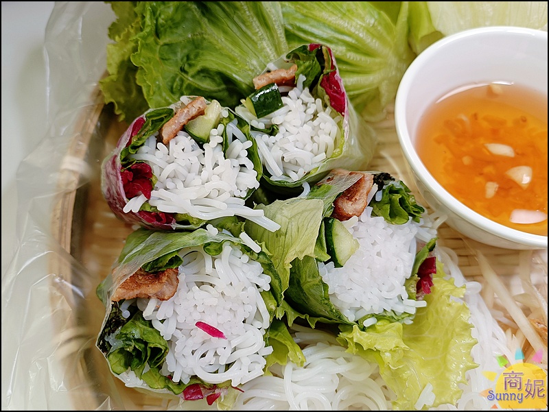 涼皮春捲裏頭有包越式烤肉片,沾特調的魚露醬汁,甜甜的滋味好吃,清爽又開胃。